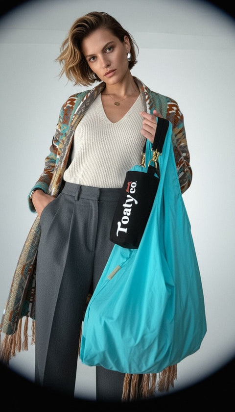 Toaty Case and Four Packable Tote Bags (Black/Cyan)